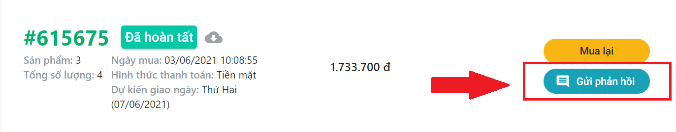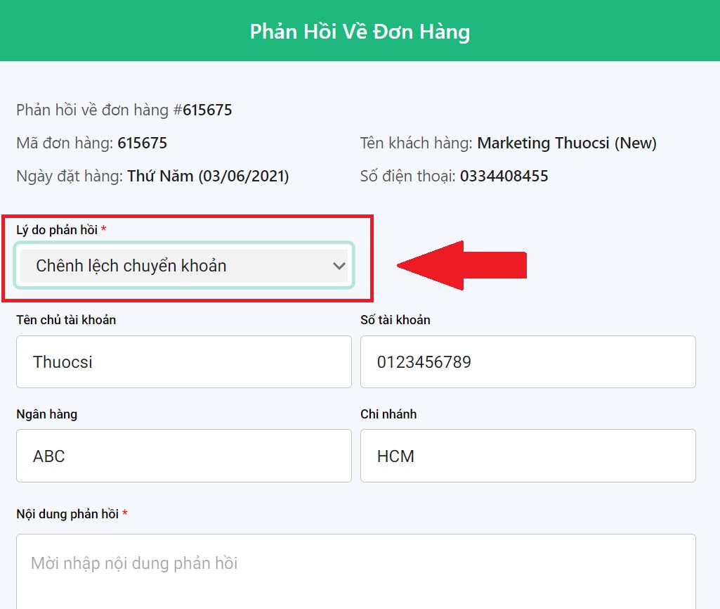 Bước 2: Chọn đơn hàng bị chênh lệch chuyển khoản và GỬI PHẢN HỒI